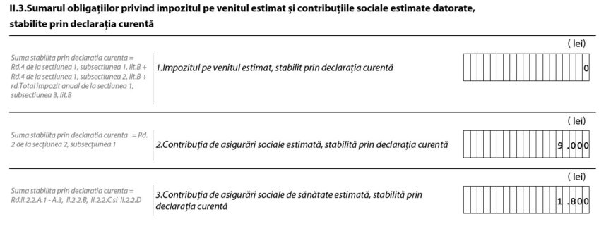 Sursă foto: simulare făcută de Economica.net în pdf-ul inteligent al declaraţiei unice, în vigoare în anul 2023.