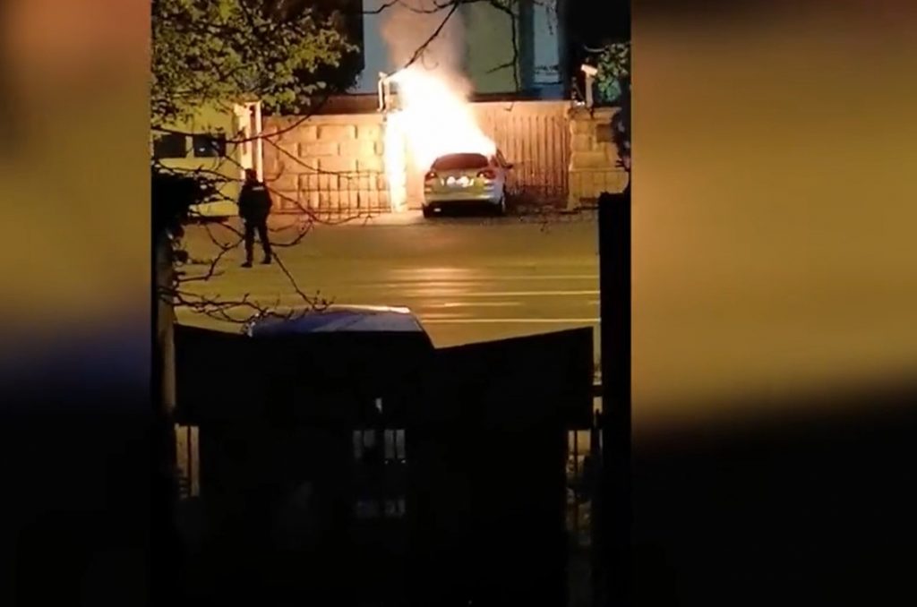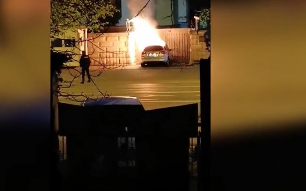 Un șofer a murit după ce a intrat cu mașina în gardul Ambasadei Rusiei la București. Autoturismul a luat foc.