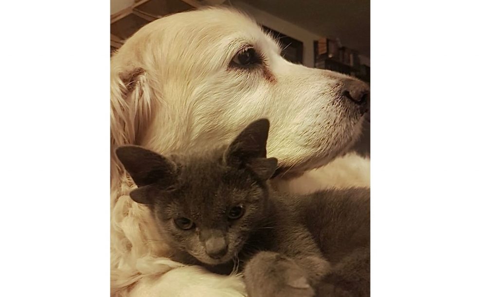 Blue Russian Blue, în vârstă de patru luni, care are patru urechi din cauza unei mutații genetice, își petrece timpul jucându-se, dormind și îmbrățișându-se cu cei doi Labradori ai familiei, Suzy, 12 ani, și Zeyno, 14 ani.