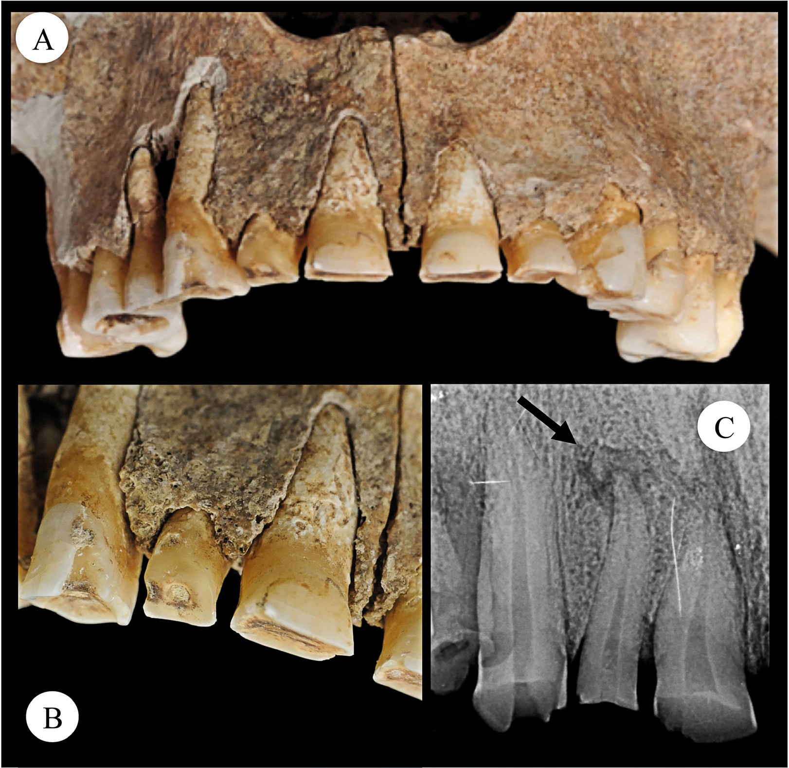 Dovezile ulterioare susțin această ipoteză. Dinții bărbatului au prezentat urme de uzură extremă, o pierdere drastică de email și o leziune osoasă. Bărbatul și-a tocit atât de mult dinții pe partea dreaptă a gurii încât și-a cauzat o infecție bacteriană. Ce legătura are asta cu proteza? Cel mai probabil, italianul își folosea dinții pentru a strânge curelele care țineau proteza atașată de braț.
