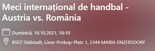 Biletele de intrare sunt puse în vânzare la prețul de 16,90 euro adulții și 9,40 euro pentru tinerii până la 15 ani. La puteți achiziționa online de aici: https://www.oeticket.com/event/oesterreichischer-handballbund-handball-laenderspiel-frauen-oesterreich-vs-rumaenien-bsfz-suedstadt-14213332/