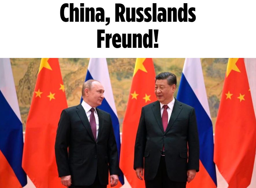 Pacea e posibilă, conform articolului din „Bild”, intitulat „China, prietenul Rusiei”, apărut pe 08.03.2022, doar cu „amenințări și asprime față de cei care vor să înceapă un război. Deci avem nevoie de mai multe arme, soldați, avioane, hackeri… „.